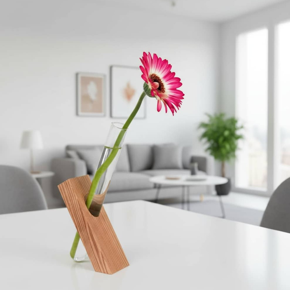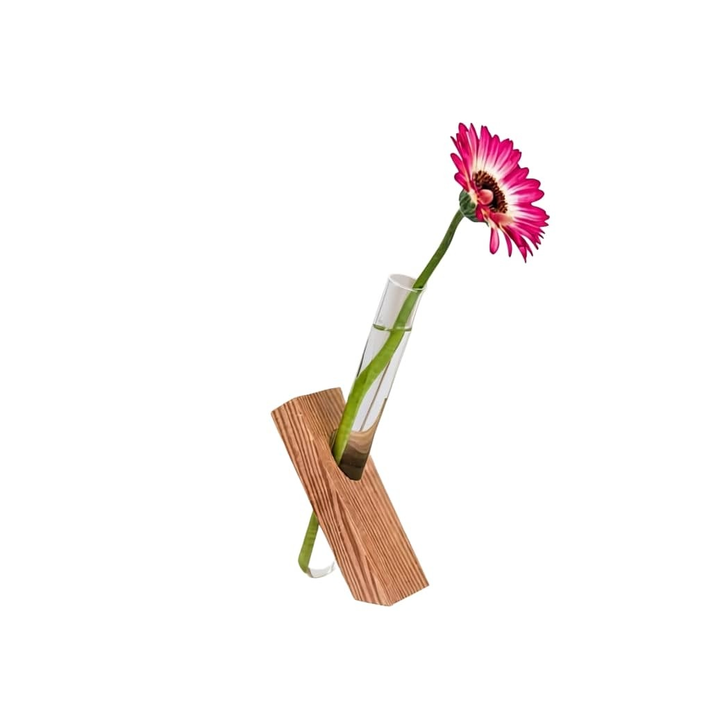 ترکیبی از طبیعت و طراحی مدرن؛ این گلدان با لوله آزمایش شیشهای و پایه چوبی زاویهدار، جلوهای مینیمال و هنری به فضای شما میبخشد. مناسب برای نمایش گلهای شاخهای بهصورت تکی، این محصول انتخابی ایدهآل برای دکوراسیون داخلی، میز کار یا هدیهای خاص است.